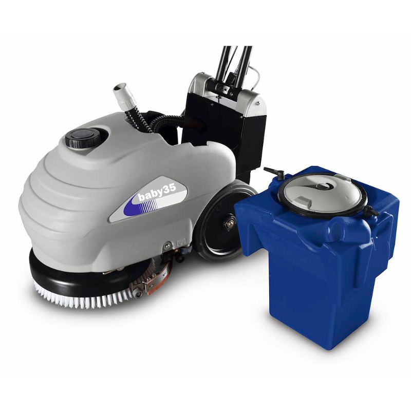BKF Baby to linia najmniejszych zmywarek do posadzek prowadzonych przez operatora. Nadają się do codziennej pielęgnacji i mycia wszelkich wąskich przejść i małych obiektów, takich jak biura, laboratoria, warsztaty, salony samochodowe, restauracje, sklepy, tarasy itp.