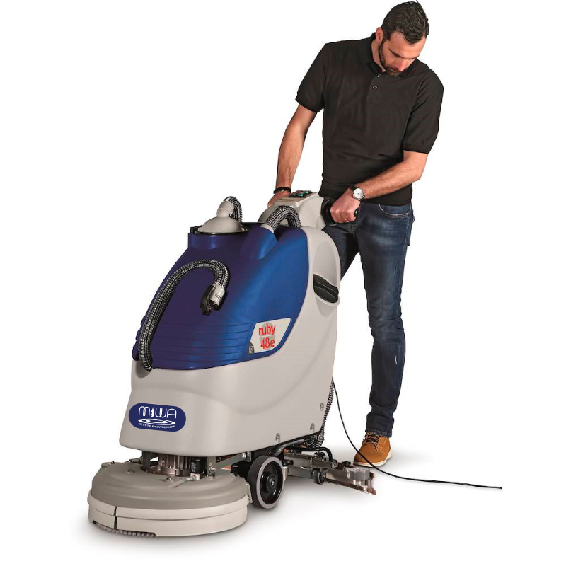 BKF Ruby E to linia zmywarek do posadzek zasilanych elektrycznie, przeznaczonych do codziennej pielęgnacji oraz gruntownego doczyszczania powierzchni w średnich i dużych obiektach handlowych i przemysłowych. Zmywarki BKF Ruby E wykonują pracę jedną lub dwiema szczotkami talerzowymi albo padami, szorują i jednocześnie osuszają mytą powierzchnię, nie pozostawiając smug ani śladów. Doskonałe parametry robocze, solidna konstrukcja oraz prosta obsługa i serwis to atuty, gwarantujące wysoką jakość czyszczenia w każdych warunkach, przy zachowaniu niskich kosztów eksploatacji.