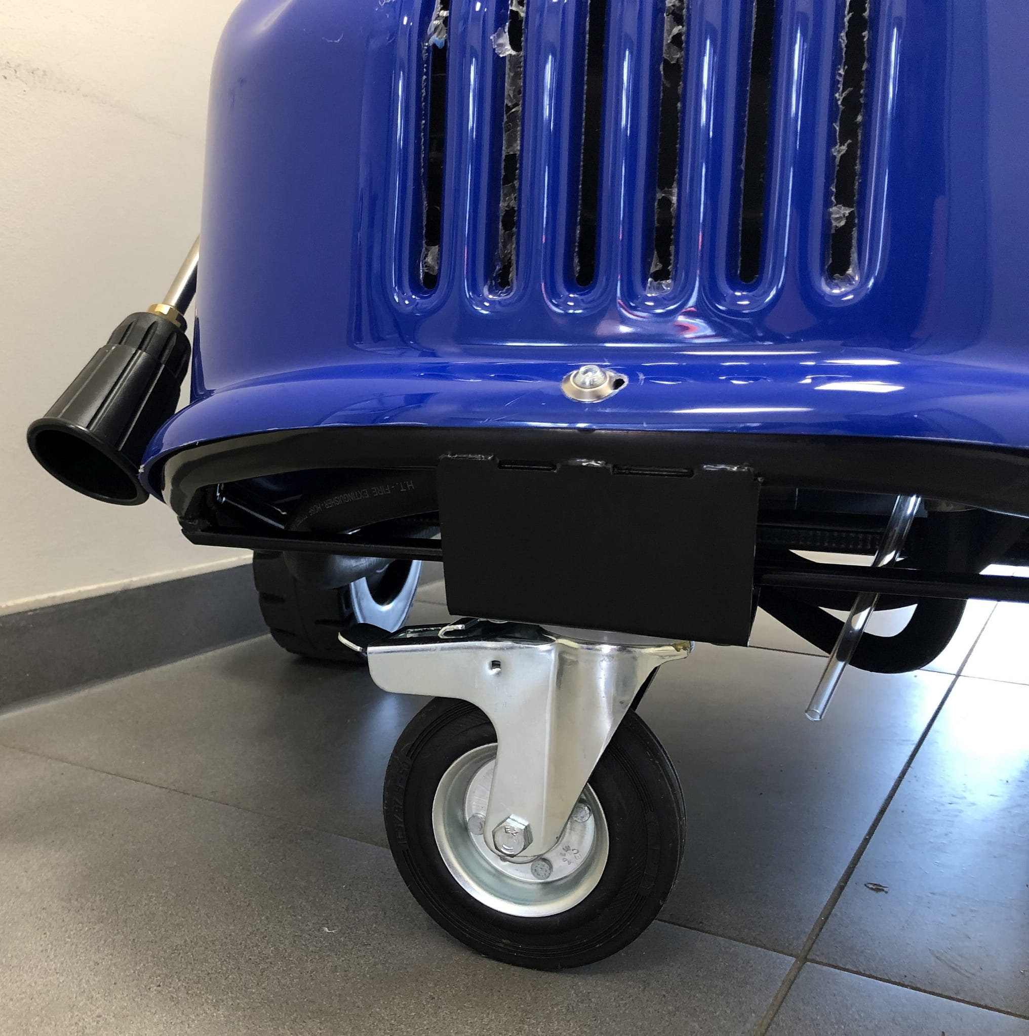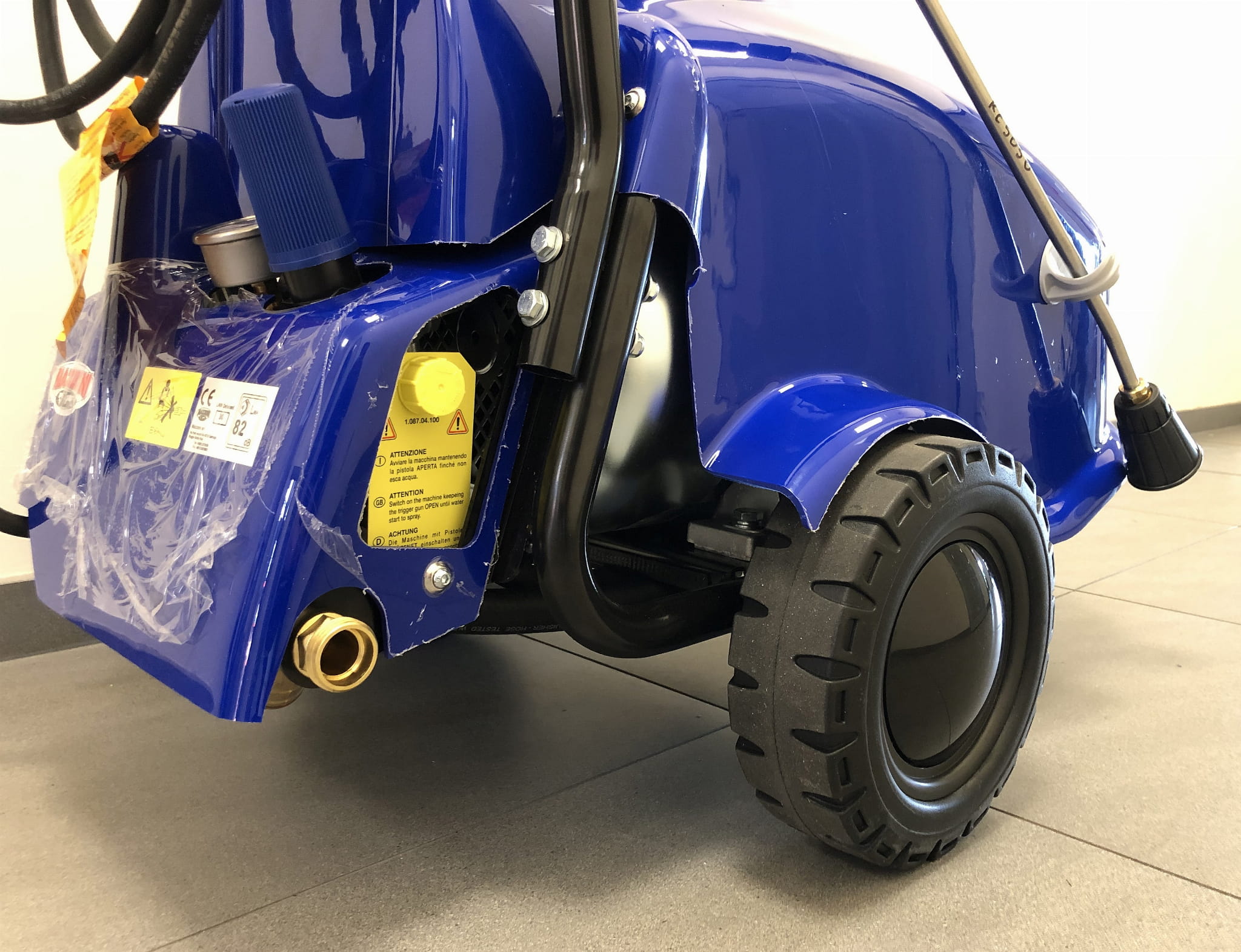 - szerokie duże 3 koła umożliwiają łatwe transportowanie maszyny również po nierównym i grząskim terenie