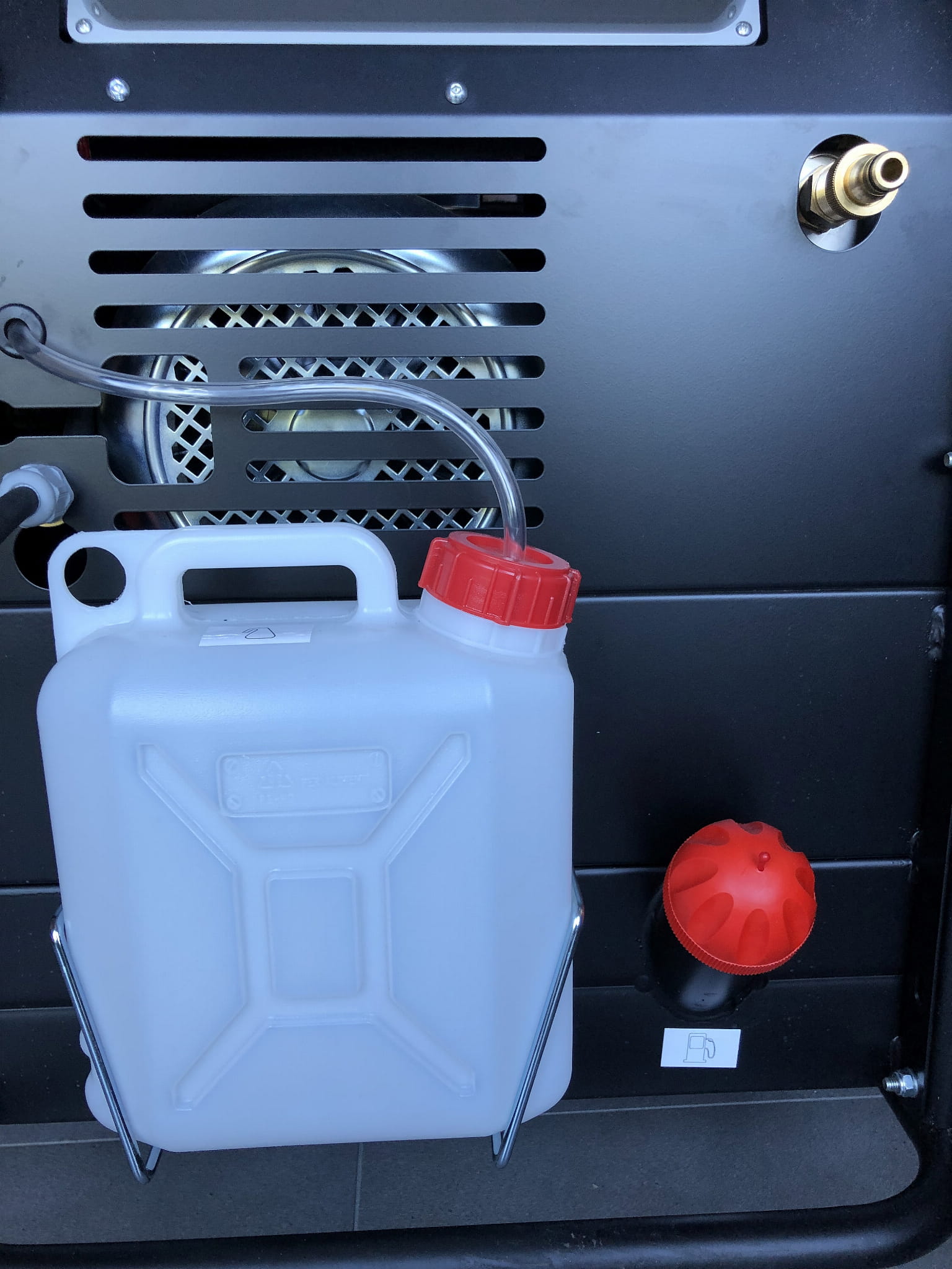 - czujnik braku paliwa 24 V (w przypadku braku paliwa brak możliwości uruchomienia silnika 230 V napędzającego wentylator i pompę paliwa)