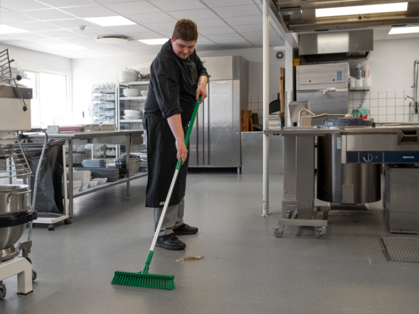 Ergonomicznie zaprojektowany, z wygodnym uchwytem, zaokrągloną górną częścią i wieszakiem. Kij pasuje do każdego produktu Vikan, który wymaga uchwytu. Nie stosować z kwasem i chlorem.
