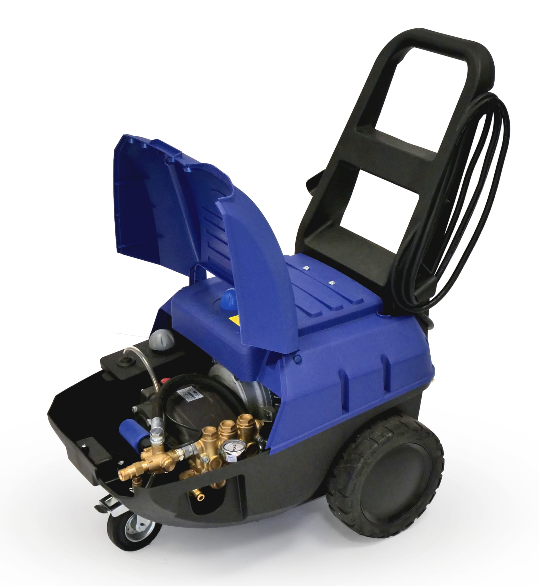 - przemysłowa wolnoobrotowa (1450 obr./min) pompa korbowodowa z zapasem mocy 25%, głowica z mosiądzu i trzy ceramiczne tłoki, żeliwny korpus (wielokrotnie trwalsza od pomp osiowych)