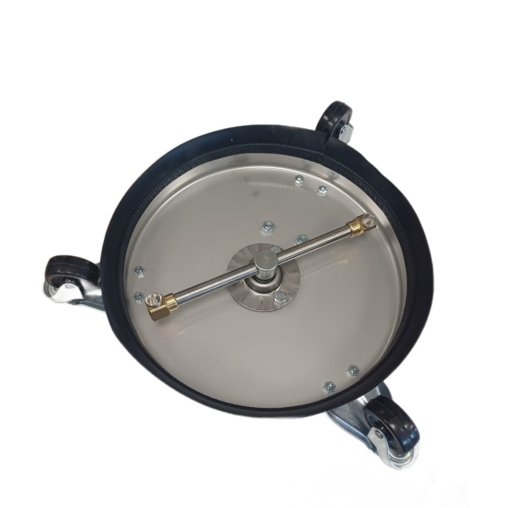 Lanca do podłóg, Round Cleaner ze stali nierdzewnej INOX o średnicy 30cm do mycia podłóg, kostki brukowej, tarasów, itp. Zawiera dwie dysze punktowe na ramieniu obrotowym, na potrójnym łożysku. Bardzo trwałe rozwiązanie skutecznie usuwające zabrudzenia.