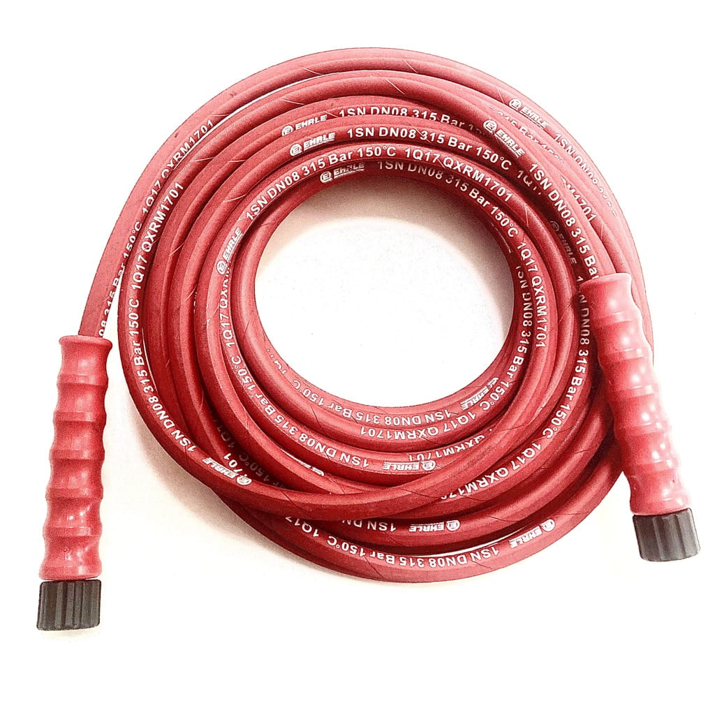 Trwały i niezawodny wąż wysokociśnieniowy EHRLE – przeznaczony do intensywnej pracy z gorącą wodą, chemią i dużym ciśnieniem. Idealny do myjek profesjonalnych, warsztatów, myjni samochodowych oraz przemysłu.