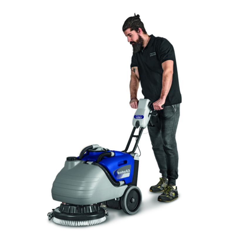 BKF Baby to linia najmniejszych zmywarek do posadzek prowadzonych przez operatora. Nadają się do codziennej pielęgnacji i mycia wszelkich wąskich przejść i małych obiektów, takich jak biura, laboratoria, warsztaty, salony samochodowe, restauracje, sklepy, tarasy itp.