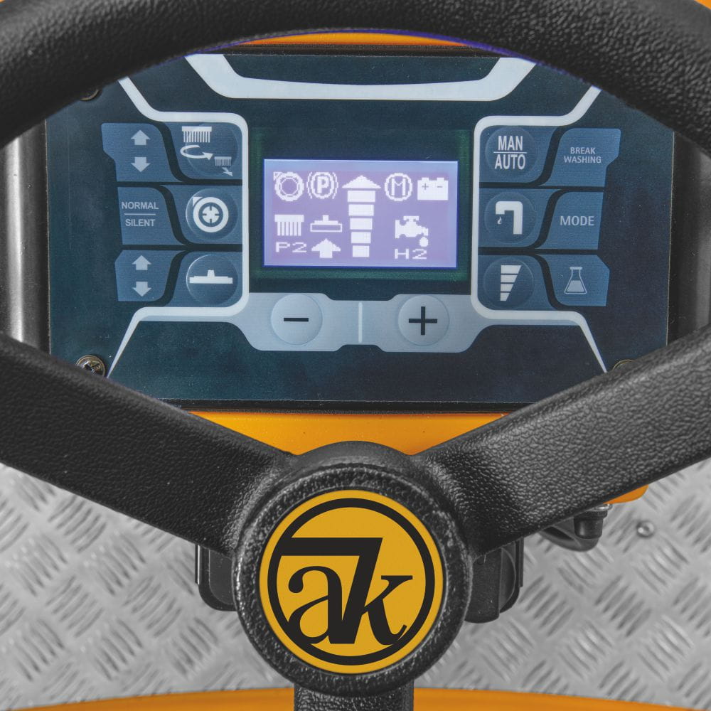 Zaawansowana elektronika odpowiada za stabilność jazdy podczas skręcania oraz pozwala ustawić pięć poziomów prędkości roboczej, dzięki czemu operator może dostosować pracę urządzenia do rodzaju powierzchni i stopnia zabrudzenia.