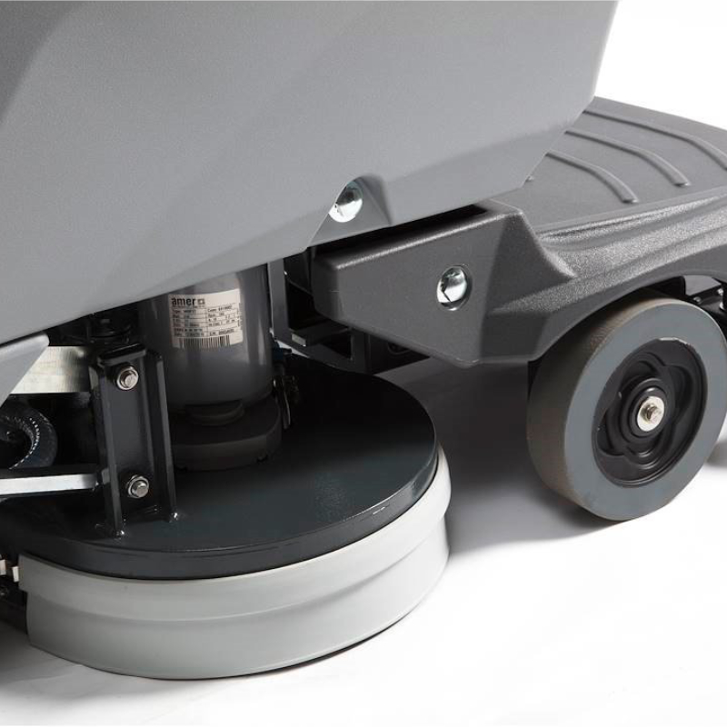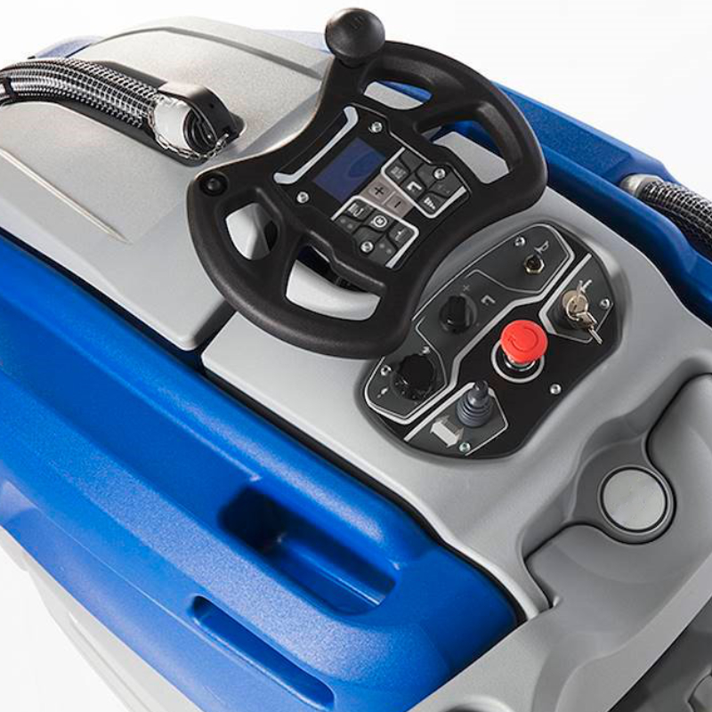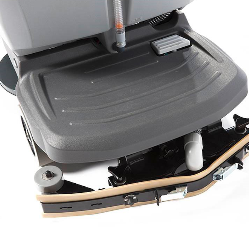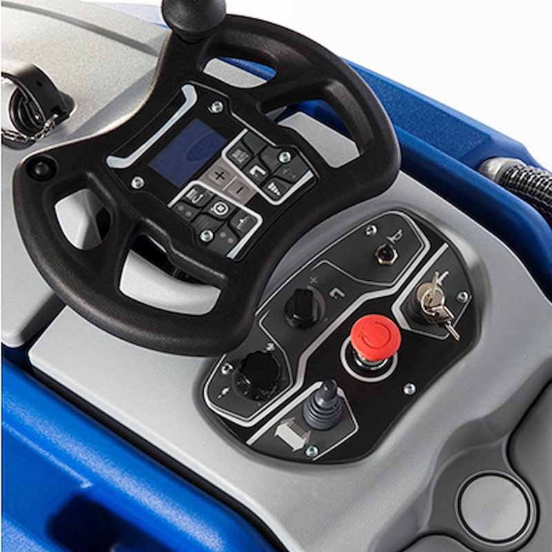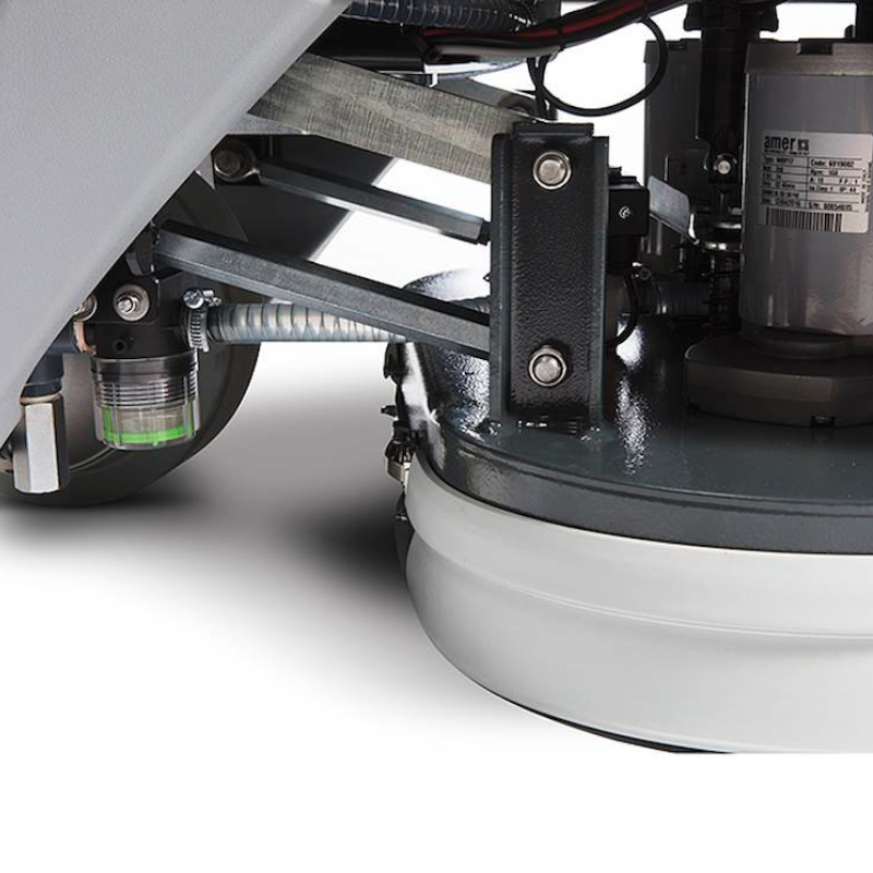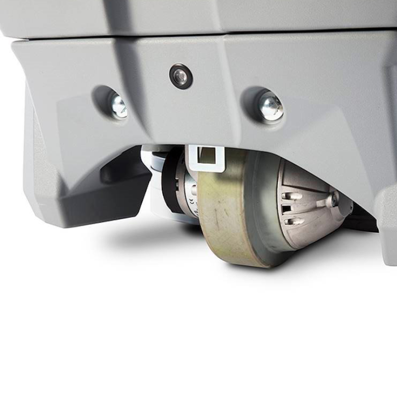 Dwa silniki szczotek o mocy 350 W gwarantują wysoką skuteczność czyszczenia nawet przy trudnych zabrudzeniach. Regulowany docisk szczotek oraz możliwość sterowania ilością podawanej chemii bezpośrednio z panelu operatora pozwalają dostosować parametry pracy do aktualnych warunków bez konieczności przerywania czyszczenia.