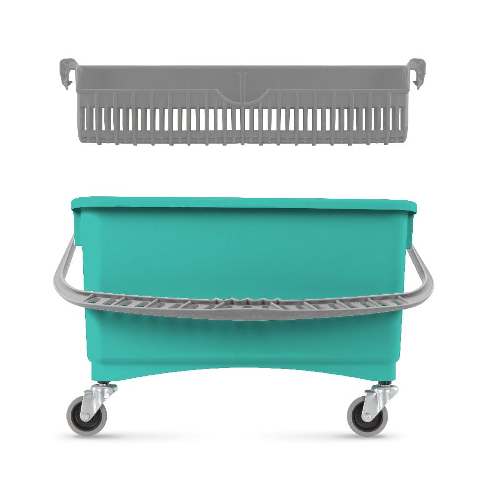 Poręczne wiadro prostokątne JIM do sprzątania podłóg oraz mycia okien. Idealne do użytku profesjonalnego jak i domowego. Dodatkowo może być wyposażone w odciskarkę oraz koła o średnicy 50 mm.